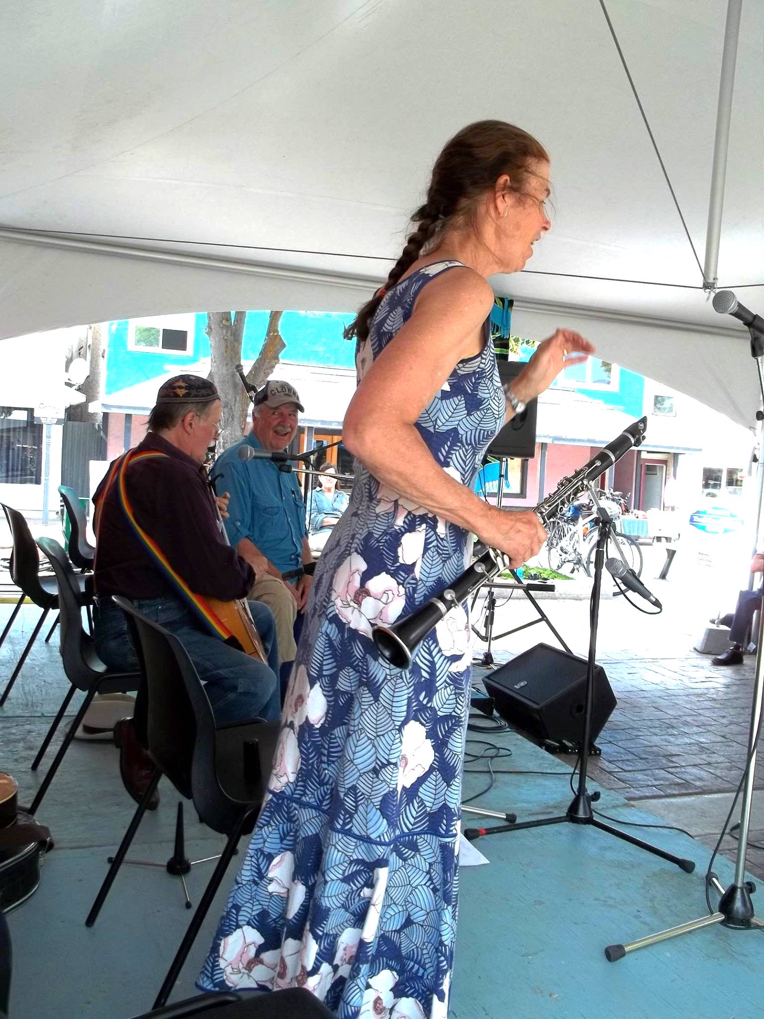 Shinndig is: Ian Johnston on guitar, Dick Pollard on fiddle and saxophone, Karen Gillmore on Irish flute, pennywhistle, and banjo, Patty Castle on bass, and everyone on vocals.